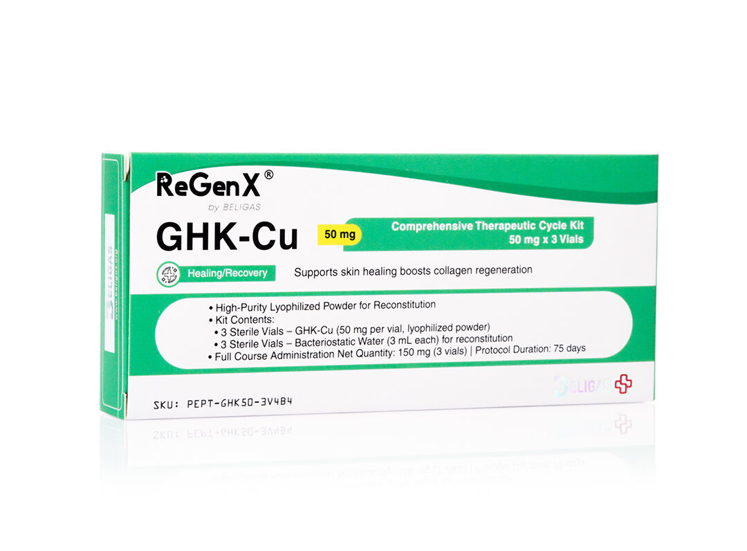 • Pack Size: 3 sterile vials – GHK-Cu 50 mg (lyophilized powder) + 3 sterile vials – Bacteriostatic Water 3 mL